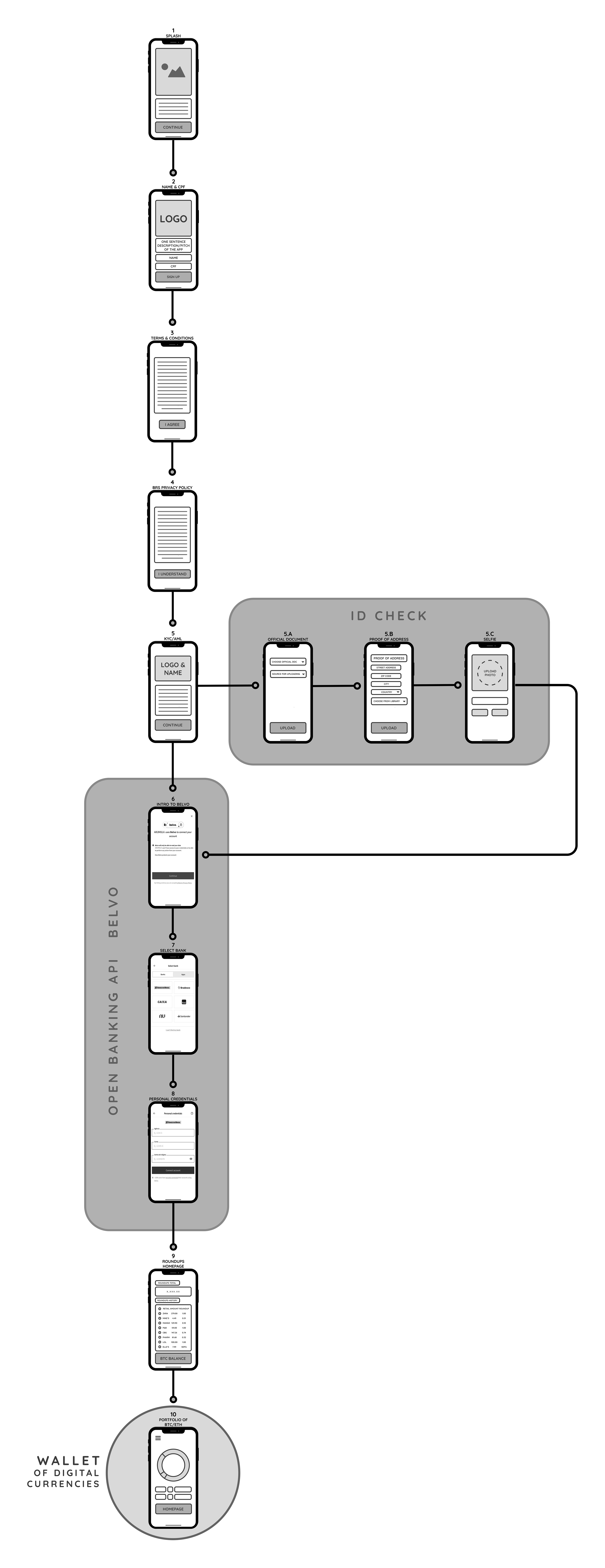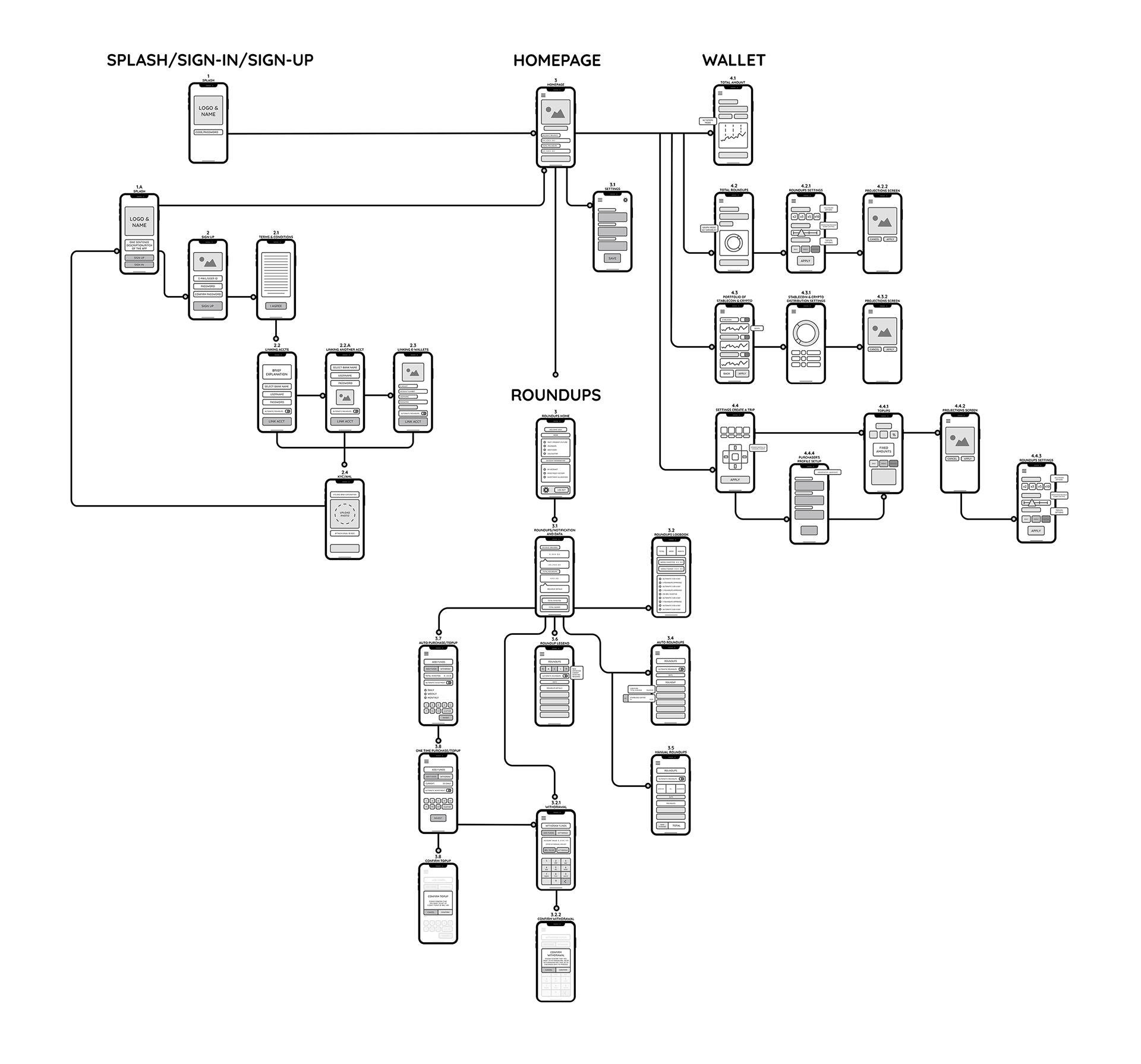 Wireframe skeletons for AKUMULA, a fintech app for savings based on roundups: